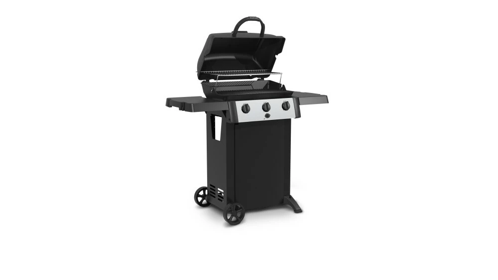 The BK 310 comes with 3 stainless steel tubular burners which gives you fantastic heat coverage across the grill as well as the flexibility to adjust the heat in different areas to your liking. The die cast aluminium hood gives great insulation to retain the heat and features a built in temperature gauge to get those cooking temperatures spot on. The sturdy, resin side shelves are perfect for holding plates or your BBQ tools, but also are able to fold down to help with storage when not in use. The BK 310 has heavy duty cast iron cooking grills which give you that extra bit of heat. The rugged wheels make it easy to move the BBQ from place to place with ease.