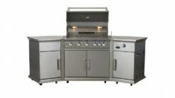The cart on the Bahama features plenty of storage space. Four stylish doors hide the massive cupboard space with the central piece having a handy shelf unit. This kitchen type design can be installed at an angle as shown in the image above, or if you would prefer a straight design you can remove the angle pieces and fit the cupboards flush to the BBQ unit.