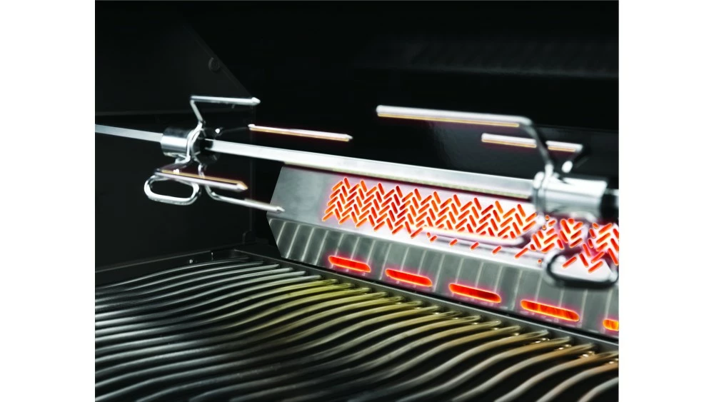 Inside the BIPRO500RBPSS-3 you will find four stainless steel tubular burners as well as the Infra-Red rear rotisserie burner giving amazing power and versatility to this beautiful machine. Jetfire ignition is added for easy lighting although the crossover ignition system is also there as a backup.
