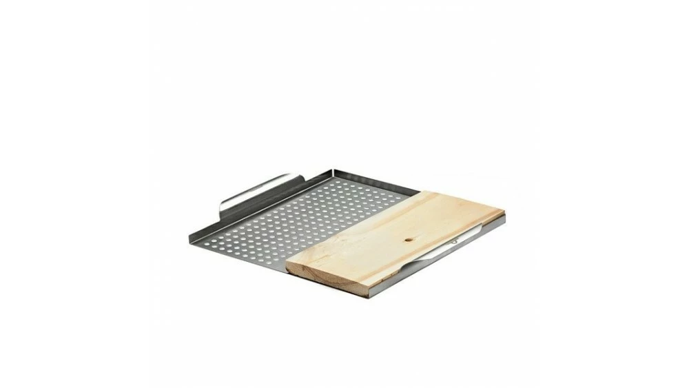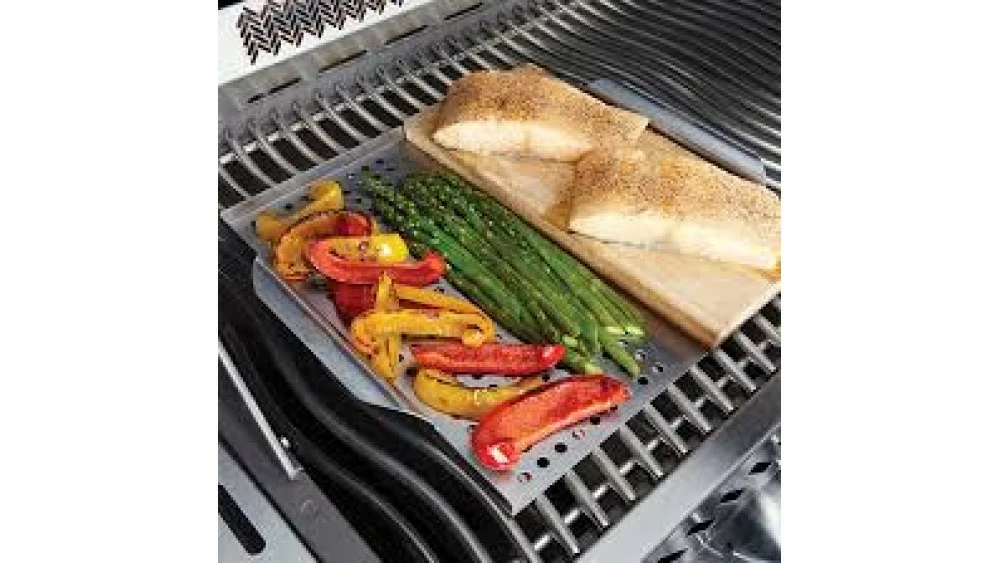 This Stainless Steel Multi-Functional Grill Topper with Cedar Plank by Napoleon is designed for your grilling needs. The perforated side makes grilling vegetables a breeze, preventing your veg from falling through the grids while they get that great grilled flavor. The flat side of the Stainless Steel Multi-Functional Grill Topper is perfect for searing delicious foods. This also doubles as a holder for the included cedar plank so you never have to worry about lighting another plank on fire. Stainless steel construction makes this grill accessory durable and easy to clean. You can easily place and remove the Stainless Steel Multi-Functional Grill Topper on the grill with the built-in handles. Just remember to wear heat resistant gloves when it’s hot. Expand the possibilities of your grill with the Napoleon Stainless Steel Multi-Functional Grill Topper.