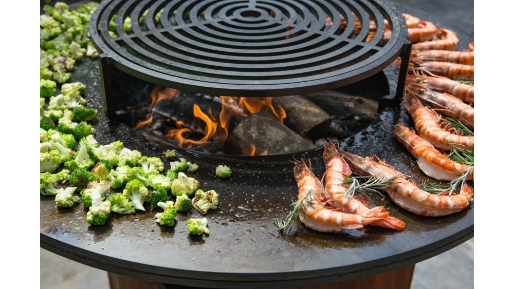 The OFYR’s simple, classic lines work in harmony with any setting, from country lawn to chic restaurant terrace and offers a practical solution that makes cooking for large numbers of people simple and low-maintenance. The cone-shaped fire bowl features a wide, flat rim that doubles as a high- efficiency cooking surface. Whether your frying eggs, slow-cooking vegetables or grilling a tender steak the heat radiates from the center in a perfectly fluid gradient, enabling you to cook at different temperatures on a single hotplate.